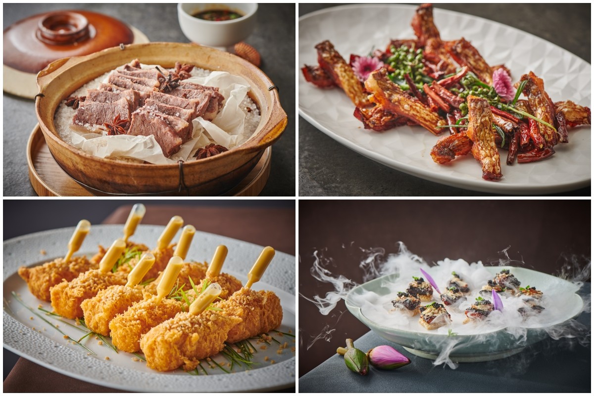 第2-5名获奖选手菜品:盐焗美极牛小排(第一排左)、私房干烹糍粑鱼(第一排右)、春色.鱼羊鲜(第二排左)、蒲烧鳗鱼配芝麻酥饼(第二排右)