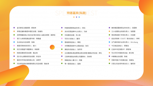 本届大会将采用多方合作、名企联合营销专家的形式,在展期联合举办超10场,参会人数超4000人,为期3天的高端论坛峰会,主办方将邀请150+意见领袖,围绕整体市场情况及未来发展趋势进行探讨,以国际化的视角呈现食品流通领域时下前沿的产业发展、产品、技术与解决方案。