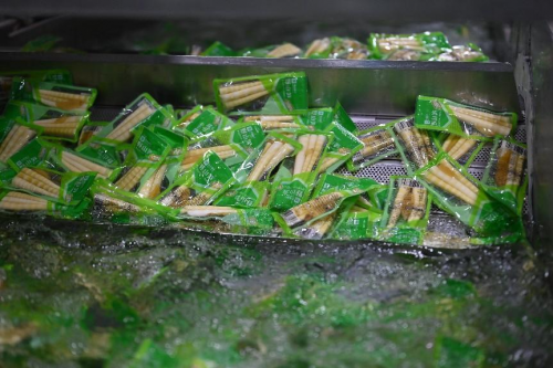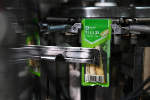 “一根20多厘米长的鲜笋,良品只取笋尖及以下8-13厘米,相当于精华中的精华,一袋100斤脱掉笋衣的筇竹笋,大概30%可以用作良品铺子野山笋零食的原料。”大关县天星镇鱼孔村收笋经纪人鄢永康介绍,在当地的加工工厂,经过清洗、脱笋壳、压榨去涩等简单工艺处理后成为初级生产加工级别的半成品原料,第一时间送往位于昆明富民县的良品铺子供应商——昆明品世食品有限公司十万级无尘智能车间。经过杀青、腌制等工序,最大限度保持新鲜,再经过脱盐、熟化、清洗、调味、罐装、巴氏杀菌等十几道工序,保留山珍的原始风味、确保食品安全,并佐以云南有名的小米辣,口感更加丰富、有层次。