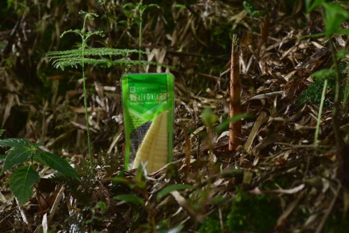 2014年,良品铺子正式推出高山野山笋,选用的就是来自云南昭通山区的A级、长度8-13cm的野生筇竹笋,其生长在海拔1800—2000米高山上,山高林密,地势险峻,至今无法用机械化方式收割,只能靠笋农上山人工收割。