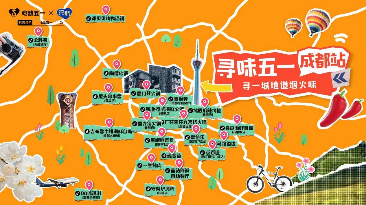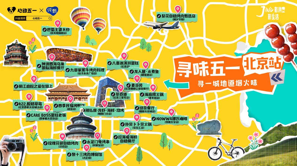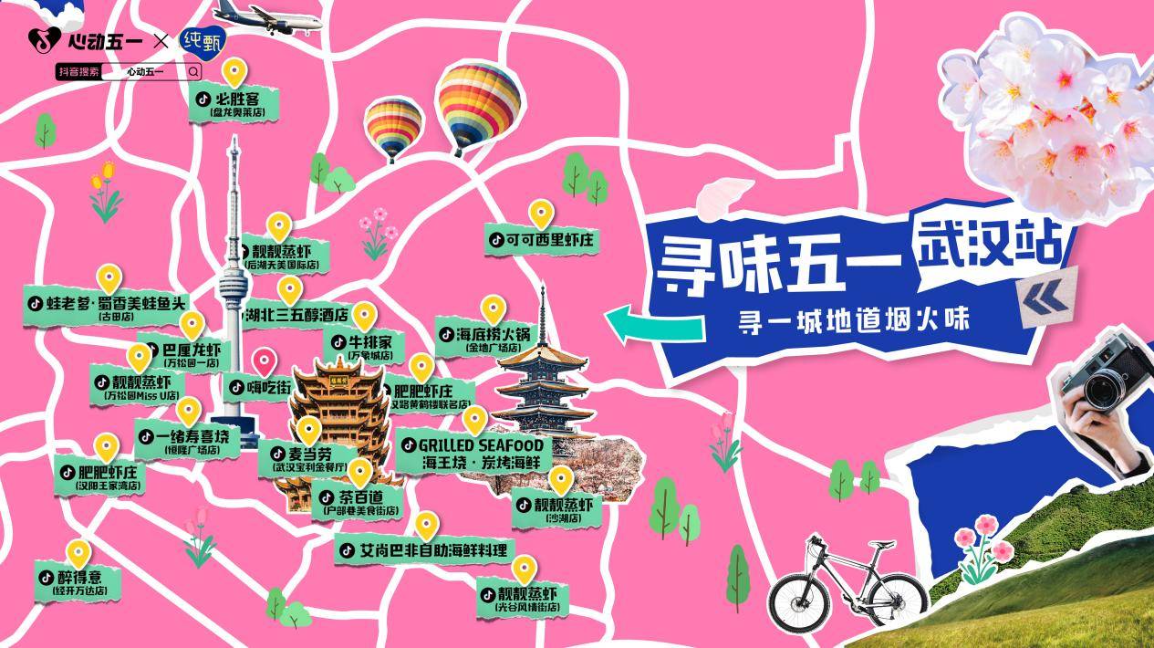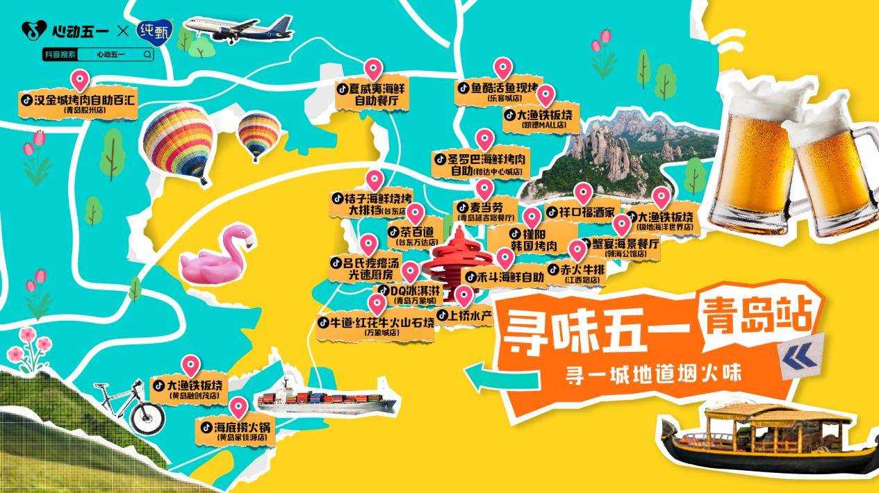 抖音生活服务餐饮行业开启「寻味五一」,携手亿万用户,寻一城地道烟火味; 此次更深耕北京、武汉、青岛、成都四座热门城市,把不能错过的宝藏餐馆“一网打尽”,以后台销量Top为数据基础制成攻略地图,带给你一次无需焦虑、轻松享美味的出行。