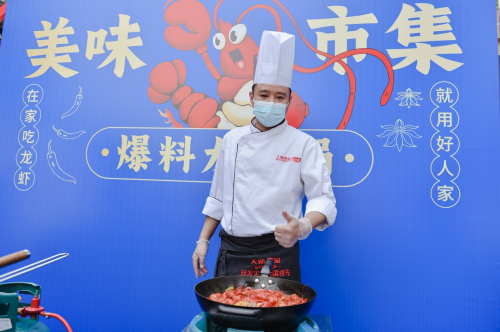 美味市集当然少不了美味。专业大厨来到现场爆炒3款小龙虾,麻辣小龙虾、辣卤小龙虾、蒜蓉小龙虾……数百斤小龙虾每天供应,营造了“视”“听”“嗅”“味”“触”的五觉体验,让用户尝过瘾,也将好人家调料的丰富与美味根植于心。