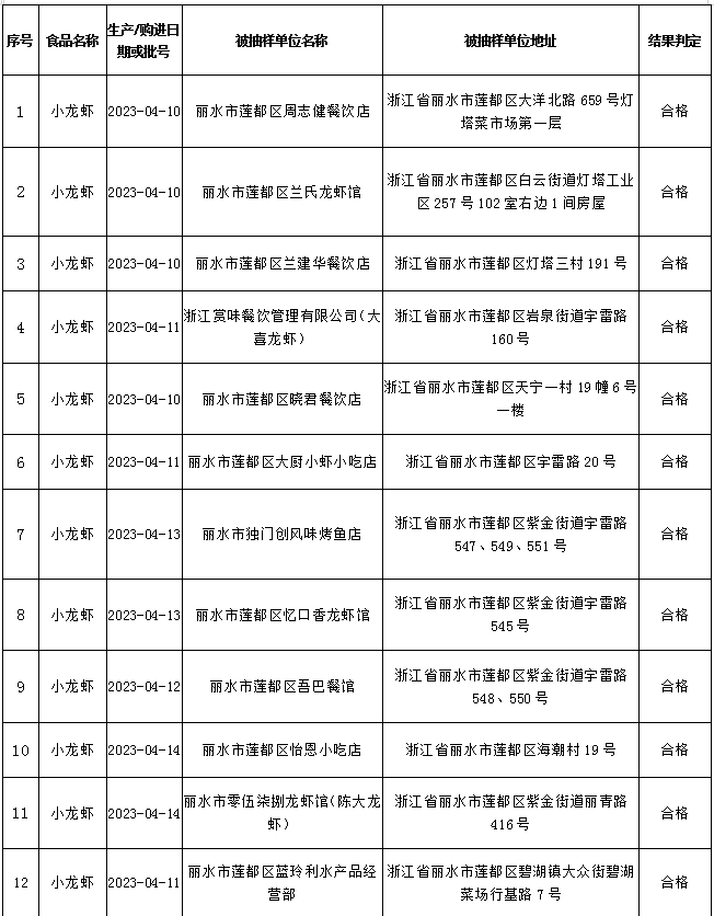 检测结果显示,被抽检12批次小龙虾上述指标均符合国家标准,大家可以放心食用。