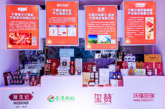 宁夏展台准备了枸杞干果、枸杞原浆、枸杞酒等产品供现场观众品尝,沃福百瑞、玺赞、厚生记、全通四家的枸杞更是成为展会现场的热门产品。