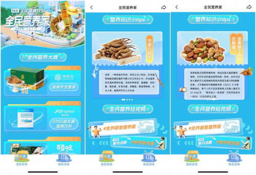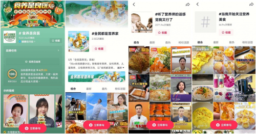契合科学营养膳食趋势以及用户需求,5月4日至5月15日,抖音电商食品健康行业推出「抖in全民健康计划|全民营养家」活动,邀请“中国营养学会科普工作委员会”为在抖音开展的#食养是良医、#全民都是营养家 两大互动话题科普内容进行指导。本活动号召全民参与,并举办「全民营养家 全域筑增长|大健康消费趋势创新峰会——全民营养创新传播论坛」,线上线下共振提升活动声量,以及内容场、营销场、生意场三场联动和全域资源加持,全方位促进全民营养意识和健康素养提升,为品牌做好健康生意提供良好契机。