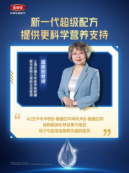 此次发布会上,金领冠核心单品珍护官宣了产品的重磅升级:奶源将全面升级为A2型生牛乳,加持中国专利配方[3],带给宝宝更好吸收的专业营养。上海交通大学医学院附属新华医院儿保科主任医师盛晓阳教授在此前发表的《A1、A2型β-酪蛋白对肠脑轴影响的比较研究进展》论文中指出:临床试验表明,与饮用含A1和A2型β-酪蛋白的牛奶相比,饮用不含A1型β-酪蛋白的牛奶胃肠不良症状和肠道炎症较少,并且在标准化测试中与认知功能的改善相关。盛教授在发布会上表示,这是因为A2型生牛乳中的β-酪蛋白与母乳中β-酪蛋白的结构和消化特征更为接近,更亲和宝宝胃肠道,是更天然、更接近母乳、更好吸收的珍稀新鲜牛乳。新一代金领冠珍护优选0.1%伊利专属牧场鲜活A2型生牛乳,通过3重严苛检测以及1重权威认证,从A2型奶牛到产品全链路确保100%鲜活A2型生牛乳,搭配金领冠珍护独有的六维[4]更易吸收体系,全面护航宝宝健康成长。