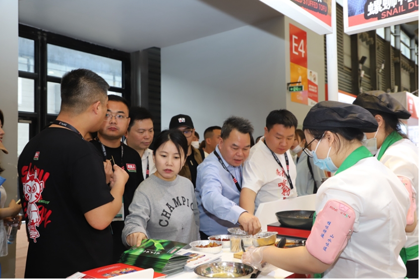 广西柳工集团食品投资有限公司位于上海新国际博览中心E4F090展位,展出“桂味联”品牌香菇卤肉饭、咖喱鸡块饭、土豆牛肉饭、鲍鱼捞饭、佛跳墙捞饭等自热米饭,升级版螺蛳粉,黑椒原切牛扒、黑椒丁骨猪扒、黑椒脆皮鸡扒等调理品,三江早春茶、黄金芽、红茶等,受到往来客商青睐,现场洽谈客商络绎不绝。