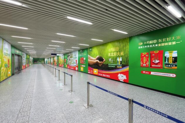 好生态不仅要被“看得见”,也要能够“亲身体验”。为了让消费者与稻田近距离接触,十月稻田在原产地进行场景搭建,吸引用户现场打卡;为了让“忙碌的打工人”也能放松,十月稻田将直播间搬到五常,开启在稻田里的纯天然直播;除此之外,十月稻田将沉浸式体验搬到北京,漫步在地铁15号线与17号线的通道里,清新的原产地生态让用户眼前一亮,仿佛置身东北米源地。