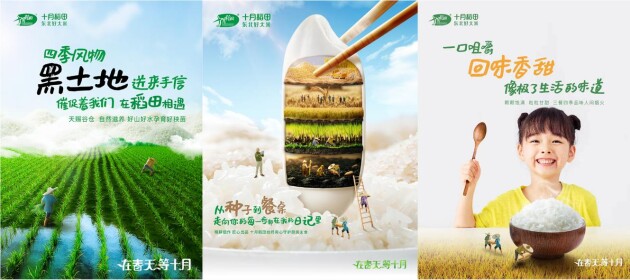 5月13日起,十月稻田在小红书及微博平台持续发布创意海报进行预热:数百年形成1厘米的黑土地,是秧苗茁壮生长的温床,约187200分钟松花江水源的灌溉与滋养、2400小时左右的充足光照、约130次的昼夜更替,是东北好大米香甜松软的能量滋补,从田间到餐桌的匠心工艺,是东北好大米的品质保障。系列海报的展现,既呈现了好大米生长的自然生态,也放大了十月稻田高品质产品背后的产地优势与极致匠心,拉近了与消费者的距离,增加了对品牌的信任度。