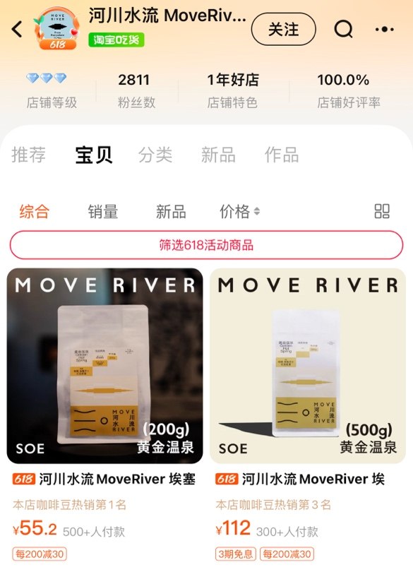 今年的淘宝天猫618,也是河川水流的第一次618。6月虽然还没有过完,但购买的消费者已经比上个月多了三倍。618让河川水流在加速找到懂咖啡的消费者。