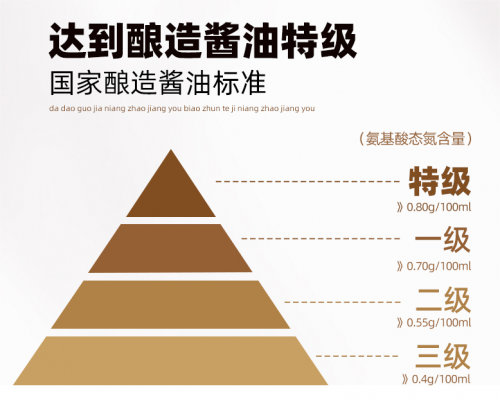 根据这个指标,酱油又分为不同的等级,合格酱油最低不得低于0.4克/100毫升,而特级酱油的氨基酸态氮能达到0.8克/100毫升。通常情况下,“氨基酸态氮”含量越高,酱油的质量等级也相应越高,味道也就越鲜美。