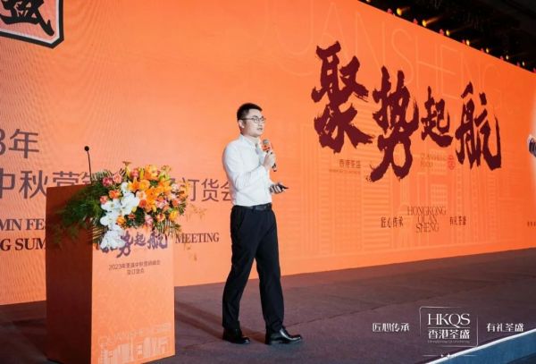 风正时济,自当聚势起航;乘风破浪,更需携手同行。会议伊始,荃盛集团董事长戴东坚先生开场致辞,怀揣感激与敬意,对在场的各位来宾表示热烈的欢迎。同时,他从经济大环境出发,深度分析2023年中秋月饼行业的现状及未来市场发展方向,给大家传递行业趋势,描绘出荃盛的美好未来,更加坚定了大家对荃盛的信心。