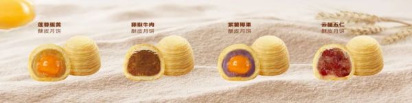 酥皮月饼,从最初的面团到酥皮、分离以及拚皮开酥全程采用独特的手工艺,彰显“匠心手作”的精神。拥有莲蓉蛋黄、藤椒牛肉、紫薯椰果、云腿五仁四大口味,做到递进且丰富,每一种都能抓住食者的味蕾。
