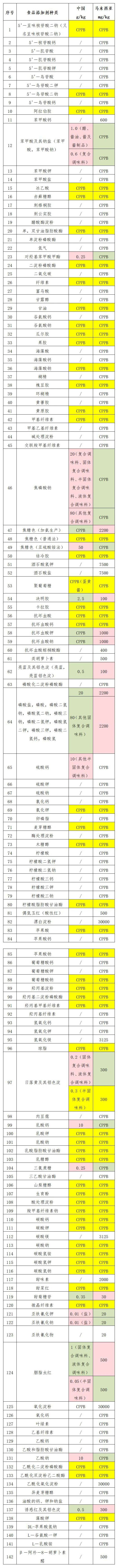 经对调味品主要食品添加剂限量指标比对分析,我国与印度尼西亚标准相同的有5‘-呈味核苷酸二钠(又名呈味核苷酸二钠)、5’-鸟苷酸二钠、阿拉伯胶、苹果酸、苹果酸钠、冰乙酸、赤藓糖醇、葡萄糖酸钠等53种食品添加剂。