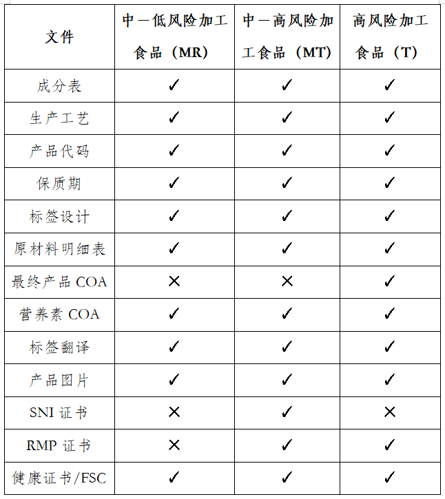 印度尼西亚国家标准食品(SNI)使用印度尼西亚国家标准标志(SPPT SNI)的分析证书或产品证书;