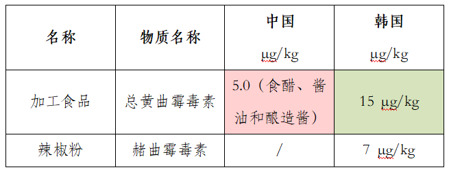 我国主要对食醋、酱油和酿造酱的黄曲霉素规定了限量要求,比韩国严格。