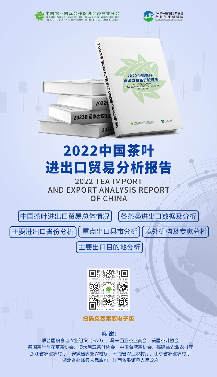 近期,由中国农业国际合作促进会茶产业分会和“一带一路”国际茶贸易产业科技创新院共同编撰的《2022中国茶叶进出口贸易分析报告》(简称“《2022报告》”)正式发布,持续服务中国茶叶“出海”!