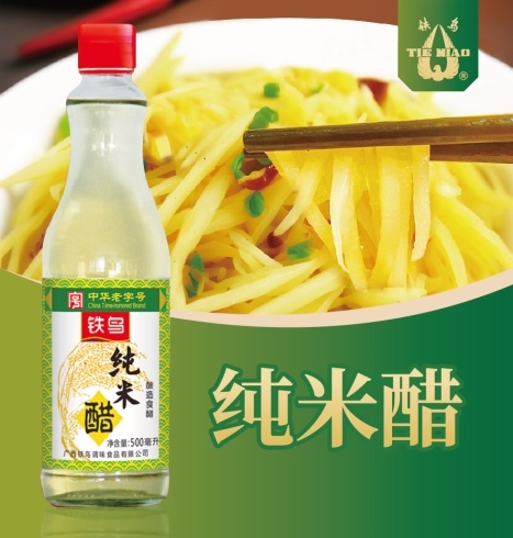 米醋澄清透亮,色泽金黄,内含二十多种有机酸、醇、酯,味道柔和纯正,铁鸟出产的纯米醋既有发酵米醋特有的清香,又带有纯正微甜的醇和酸味。