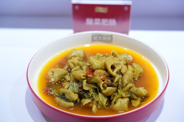 不仅在展区展现了产品的多元化及烹饪便捷性,龙大美食还精选龙大鲜食记肉肠、香脆肚条、酸菜肥肠、金汤酸菜鱼、清卤肥肠、蒜香烤肠等产品放在餐盘中展示,以日常食用的场景化还原,让观众离美食更近一步。