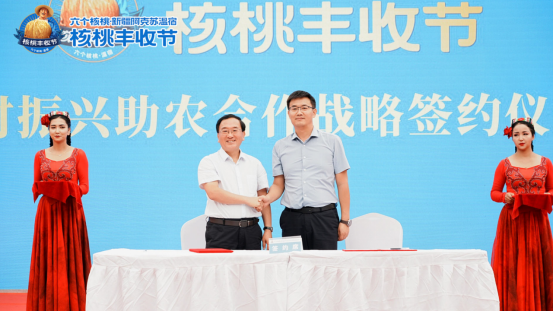 活动现场,六个核桃分别与温宿柯柯牙农发集团签署“乡村振兴助农合作战略协议”,与新疆誉通农业科技有限公司签署核桃青果采购意向签约,将助力农民增收增益、提升经济发展的企业社会责任落到实处,据了解六个核桃每年核桃使用量超过一亿公斤,是我国规模最大的核桃深加工企业,也是全球核桃单体用量最大的加工企业。