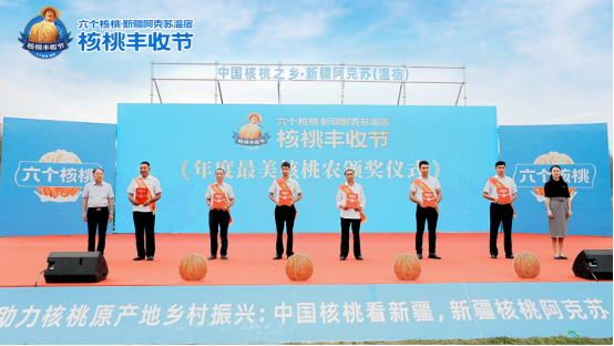在温宿核桃产业高质量发展过程中,涌现出诸多感人事迹。荣获“自治区级民族团结进步模范个人”称号的核桃兄弟莫合塔尔·吐尔地和赵武忠,作为“2023温宿县最美核桃农”代表讲述多年来互帮互助携手致富的故事。