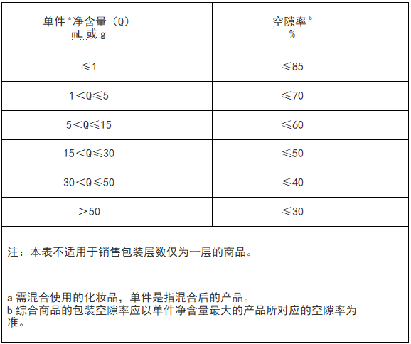 表1食品和化妆品包装空隙率