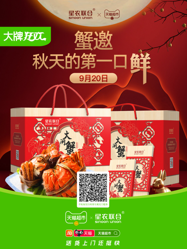 秋天真的是吃货们的天堂,不论汁多味美的各类鲜果,还是香甜软糯的红薯板栗都是让人流连忘返的美味。当然,秋季黄浓膏厚,肉质肥美的大闸蟹更是不能缺少的,俗话说“蟹肉上席百味淡”资深吃货们是不是已经跃跃欲试要品尝这口“限定鲜美”了呢?星农联合已经为大家提前准备了,9月20日星农联合x天猫超市主题活动,开启“蟹邀秋天第一口鲜”,具体活动内容希望大家敬请期待。