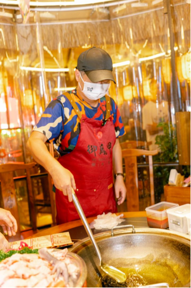 庆典的剪彩仪式是代表着御凤甲正式开张的重头戏,剪彩嘉宾们从礼仪人员手中接过金剪进行剪彩,完毕后相机将这一重要时刻记录了下来。更值得一提的是惊艳全场的炒鸡过程展示,使用的鸡肉都是赵亮老师自己养的鸡。赵亮老师一身厨师标配服装,戴着口罩的他展现出熟练的操作,好似身怀绝技的大师舞剑,每一步都显得轻松又专业。制作的空余,赵亮老师还能与一旁的达人自然对答,如同生活中老一辈的随意唠嗑,你问一句我答一句。在看的过程,各位达人已经被馋地紧了,在赵亮老师最后一步完成后就拿起筷子小心翼翼地品尝一口刚刚出锅的鸡肉,尝过的达人直夸这鸡肉“巴适的很”。
