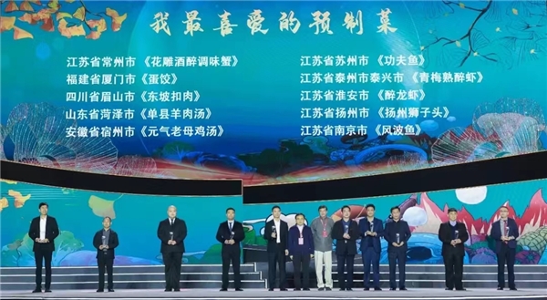 随后,主办方为获奖企业颁发了荣誉奖项。五香居的“花雕酒醉调味蟹”凭借其醉人的香气和绝佳的口感,让人回味无穷。该菜品不仅在11月7日荣获江苏地区的“我最喜爱的预制菜”奖项,更在11月9日的全国总决赛中一举夺得了“我最喜爱的预制菜”奖项。