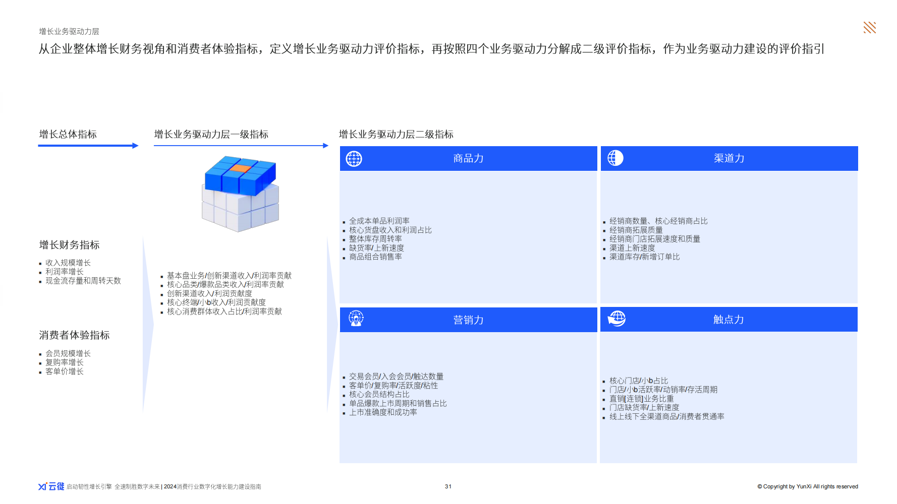 围绕着企业增长和消费者体验升级的核心,企业需要关注三个重点层级的能力:增长业务驱动层、增长数字运营力层、增长组织变革力层。