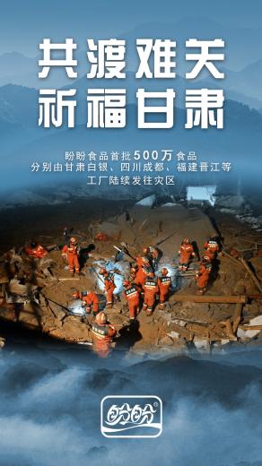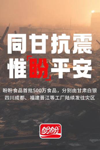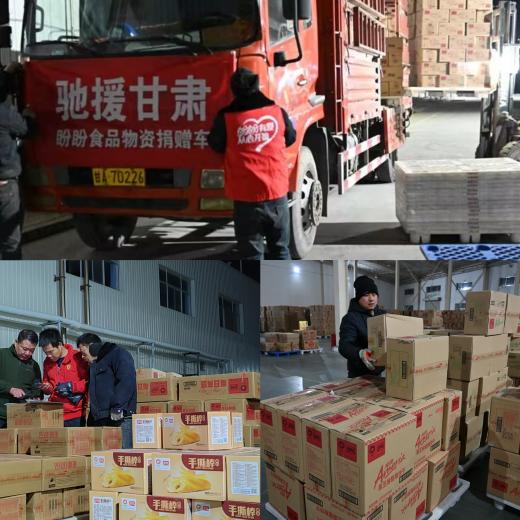地震无情,人间有爱。危难当前,民族企业更应带头表率,承担起一份职责、肩负一份担当。十二月的冬夜严寒,灾区的同胞更需温暖。为了让灾区群众能更快获得救助物资,盼盼食品统筹甘肃白银、四川成都、福建晋江等数家工厂,连夜装车,紧急配送,同“甘”抗震!