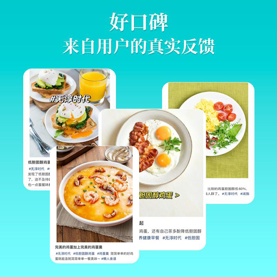 无淳时代低胆固醇鸡蛋采用“茶多酚降低胆固醇”的专利技术,制定严格企业养殖标准,通过科学喂养使得鸡蛋中的胆固醇含量低于普通鸡蛋60%—80%。这对于需要控制胆固醇摄入的上班族来说,无疑是一个福音。同时,无淳时代鸡蛋的蛋清细腻、蛋黄醇香、蛋形饱满,还富含多种营养成分,如蛋白质、卵磷脂型DHA、铁锌硒等微量元素,有助于提高免疫力,保持身体健康。