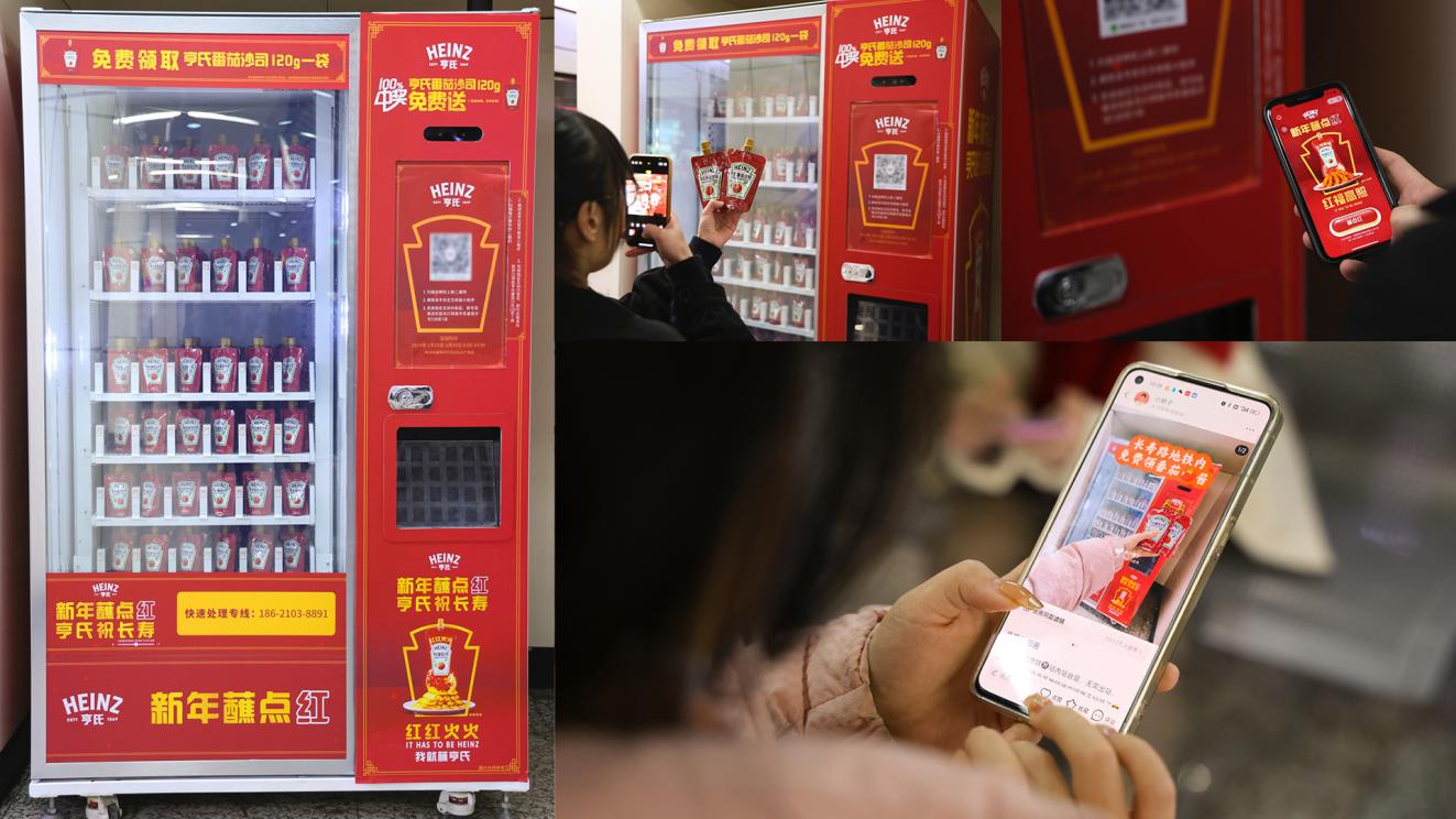 2024年1月15日,亨氏“送红运”装置空降上海长寿路地铁站,消费者扫码选择专属亨氏新年菜,还可获得亨氏番茄沙司120g装以及专属开年祝福。