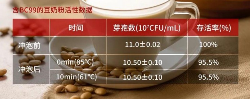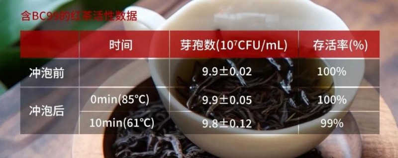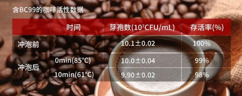 凝结魏茨曼氏菌BC99分离的健康婴儿肠道,它具有优异的耐热性能。实验数据显示,在80℃水浴处理2小时后,凝结魏茨曼氏菌BC99的芽孢存活率高达98%;而在100℃高温处理10分钟后,其芽孢存活率仍能维持在96%。通过微康益生菌研究院的实验检测,凝结魏茨曼氏菌BC99在热饮品中能够保持较高的活性。