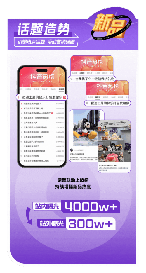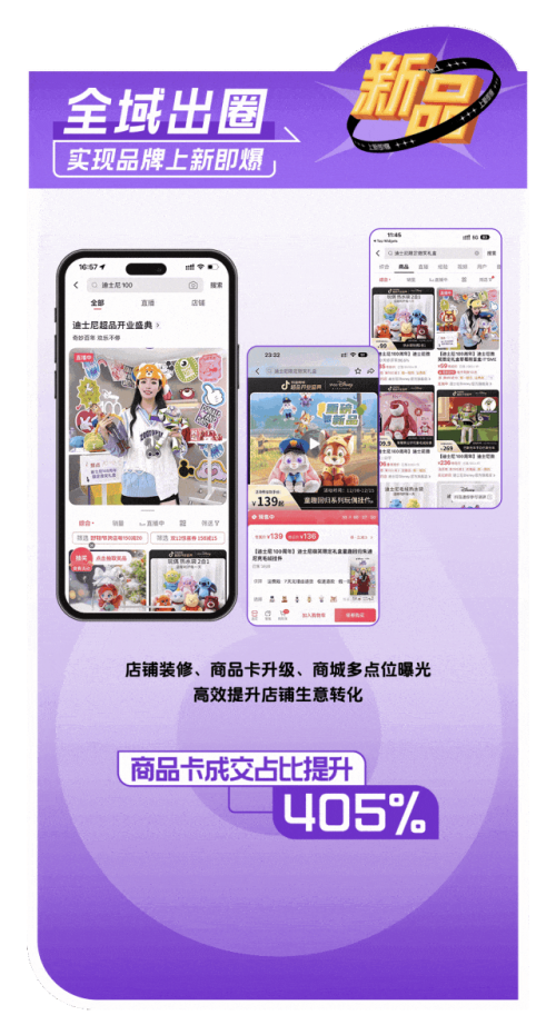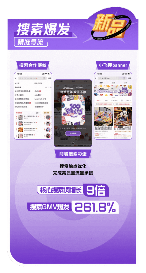 迪士尼通过「话题引爆,营销共振」的策略,围绕周年狂欢节造势,站内曝光超 4000 万,再通过搜索优化承接流量,新款销售额同比增长 478%。