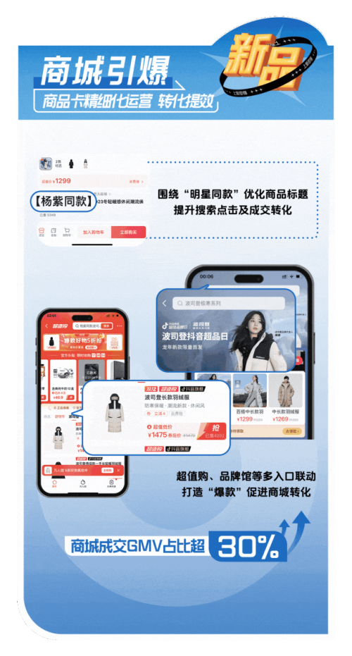 迪士尼周年庆造势“打爆”新品,实现销售额同比增长 478%;波司登和明星杨紫在直播间沉浸式互动种草,搜索 GMV 环比提升 3590.6%;