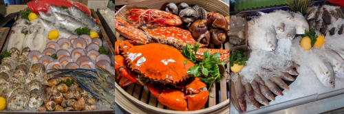 才刚到渡船头,就被渡船头旁这几个大大的海洋生物装置给吸引住目光,仿佛正在告诉你「没错,我们的食材真的很新鲜」,一进入到餐厅,映入眼帘的则是摆满各式海鲜的冰柜,以及活跳跳的虾子、螃蟹,看看这个派头就知道,这里的海鲜想不新鲜都难。