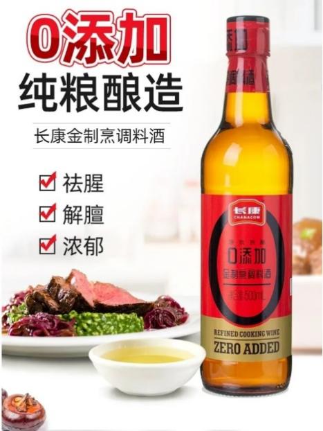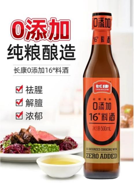 以长康料酒为例,产品瓶身明确标注料酒为纯粮酿造,配料中主要成分为水、大米、酵母提取物、香辛料、食用盐。大米纯粮酿造,成分简单,并无添加其他添加剂,酝酿出来的是自然本身的醇厚与鲜香,产品色泽澄亮,酒香浓郁,酒体醇厚,具有突出的去腥去膻、增香提鲜、丰富菜肴整体风味的作用价值。