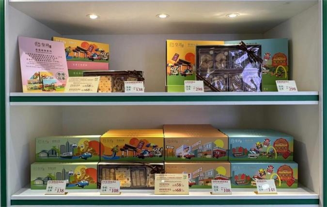 「香港皇玥」是香港本土品牌,在港有40多间店~~他们家除了流心奶黄月饼出名之外,蝴蝶酥、曲奇和蜂巢蛋卷也很不错,其中皇玥香港故事系列包装盒很特别,是香港代表性建筑和文化特色,包括叮叮车、维港帆船和双层巴士等,因此十分适合作为香港手信送给朋友。