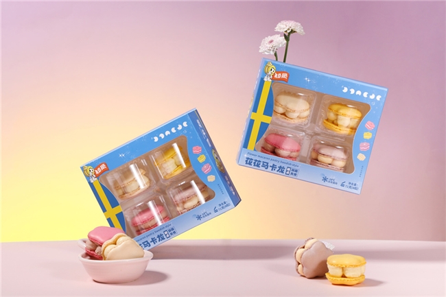 区别于市场上走B端路线的冷冻烘焙品牌,知是品牌自成立起就定位精准,全面铺货零售终端,践行精品路线,依托敏锐的消费洞察和技术研发力量,相继开发了马卡龙系列、芝士系列、慕斯系列、乳酪卷系列、千层蛋糕系列5个系列10余款产品。其中,把“马卡龙”作为品牌差异化的核心大单品,从原料选取、口感调配再到包装设计,都是经过多轮甄选,产品口感以心软清甜为差异化优势,经过上百次的配比实验,创新降糖配方,一改西方马卡龙过于甜腻的印象,直接降低了45%的糖度,口感更清甜,更适合中国胃。上市后市场表现亮眼,销量增长迅速,在此次展会上也收获了超多好评!
