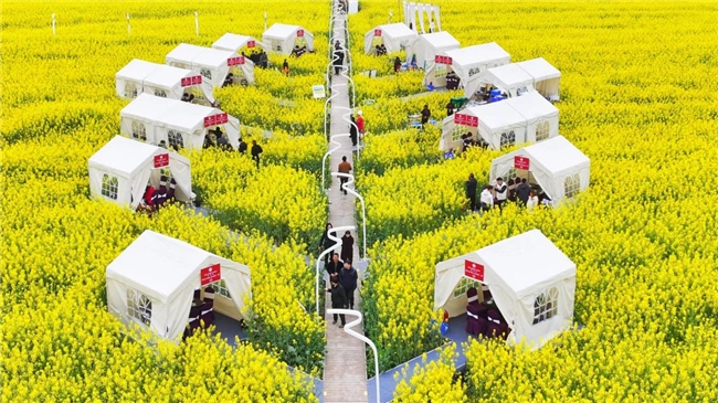 3月10日,天府农博园热闹非凡。除了观赏彩色油菜花,在花田里吃火锅、喝咖啡也吸引了不少人。此外,一场露天音乐会为这个周日增添了热闹;一周后,“糖酒会天下·潮饮生活季”在成都高新区交子音乐广场拉开帷幕。成都地标双子塔上出现了“干杯 成都”几个大字,氛围感满满……
