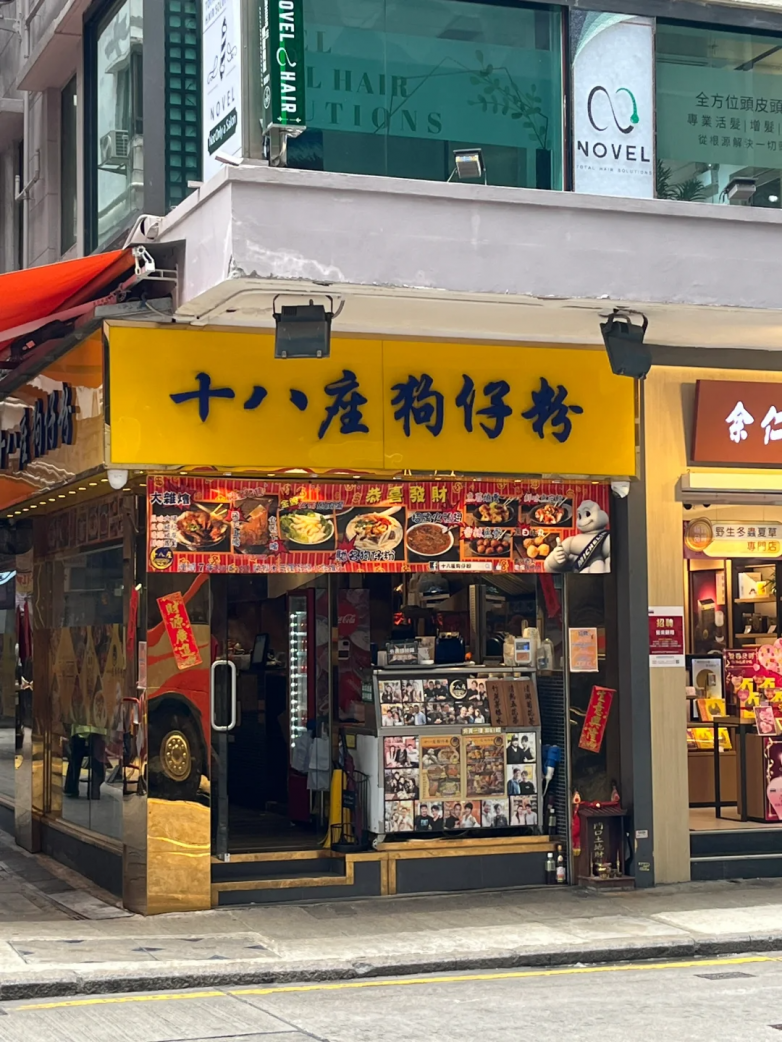 沿着弥敦道经过白加士街到达佐敦宁波街「十八座狗仔粉」,这个狗仔其实跟大家所熟悉的“狗仔”不太相同,因粉条形似狗尾巴而得名“狗仔粉”。作为米其林街头小吃有很多明星推荐,这家店是用粘米粉和热水搓成,口感比用濑粉好很多,有点嚼劲,我加了一份猪油渣配上猪骨浓汤,简直不要太好吃!