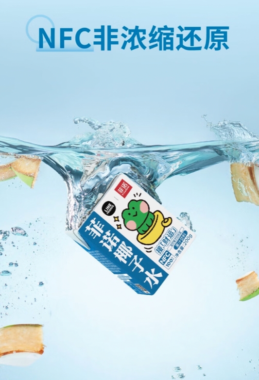 菲诺椰子水采用NFC非浓缩还原,果汁含量100%,重新定义新鲜度。