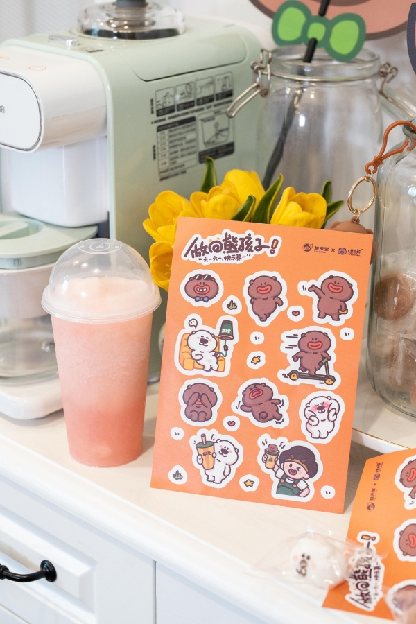 不只是新品好喝,益禾堂还为了迎接“熊孩子”们的儿童节,专门与小熊IP“下里巴熊”进行了联名,主题就叫“做回熊孩子”。
