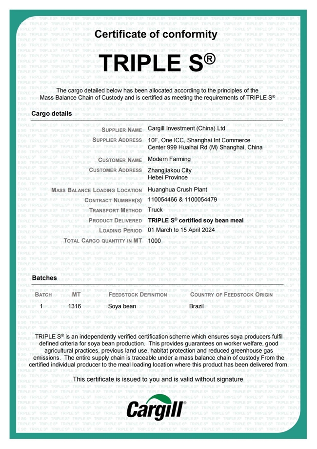 现代牧业还与中粮国际有限公司、嘉吉中国合作,完成中国首单“零毁林”大豆交易,有力推广和倡导了可持续大宗农产品贸易,助力集团打造更加绿色的上下游产业供应链,更是对地球生态系统的保护,大幅降低气候变暖给人类带来的潜在风险。