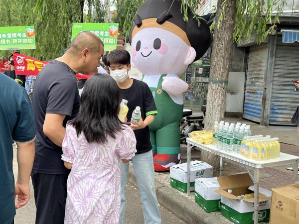 在西安某高考考点外,益禾堂设立“高考王者后援站”,为陪考家长们提供免费饮品与志愿者服务,为他们解决实际困难,让守护高考一线的家长感受到一份清凉与安心,践行品牌责任。