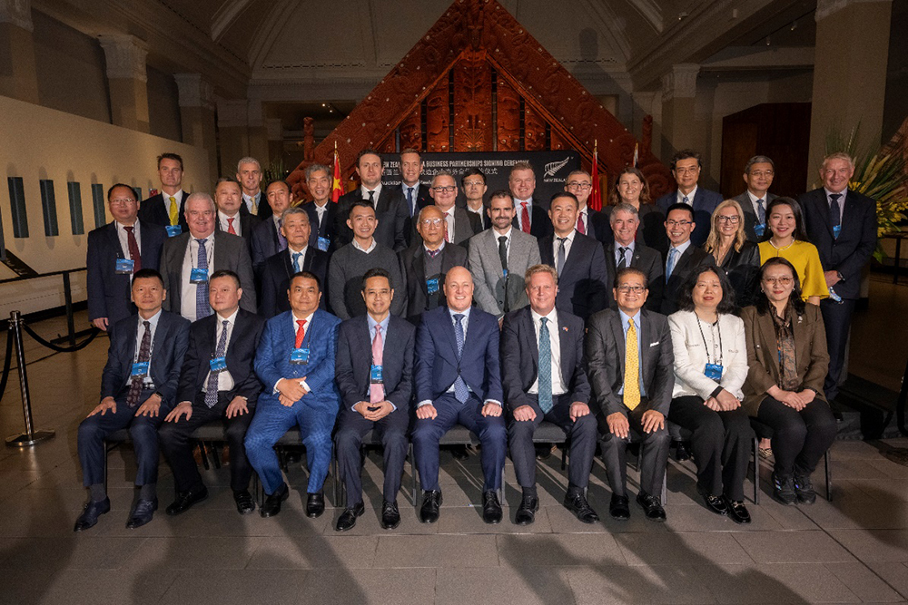 图:新西兰总理拉克森(Christopher Luxon)和新西兰贸易部长麦克莱(Todd McClay)出席新西兰与中国双边企业商务合作签约仪式