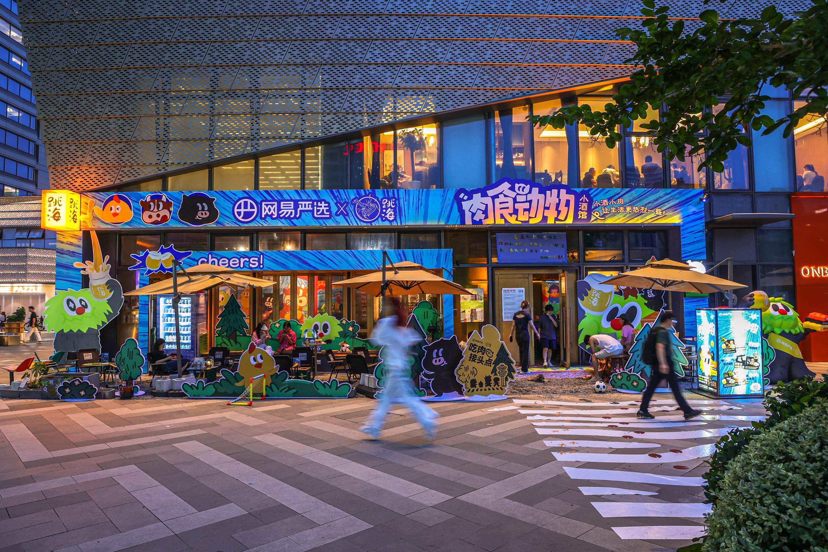 不仅如此,网易严选携手跳海酒馆还推出“肉食动物”小酒馆主题店,重新将跳海杭州聚才路店装点一新,严选肉食高萌解压IP形象Chill、猪迪、吉吉、牛牛化身“员工”开门迎客。活动期间每周六、日晚,主题店内都将举办“肉食动物森林运动会”,射门、颠球、毽子比赛等“消食”游戏轮番登场。当吃、玩、社交三大“夜需求”同时摆在面前,年轻人理所当然地举起“鳌拜爪”,选择“我全都要”。