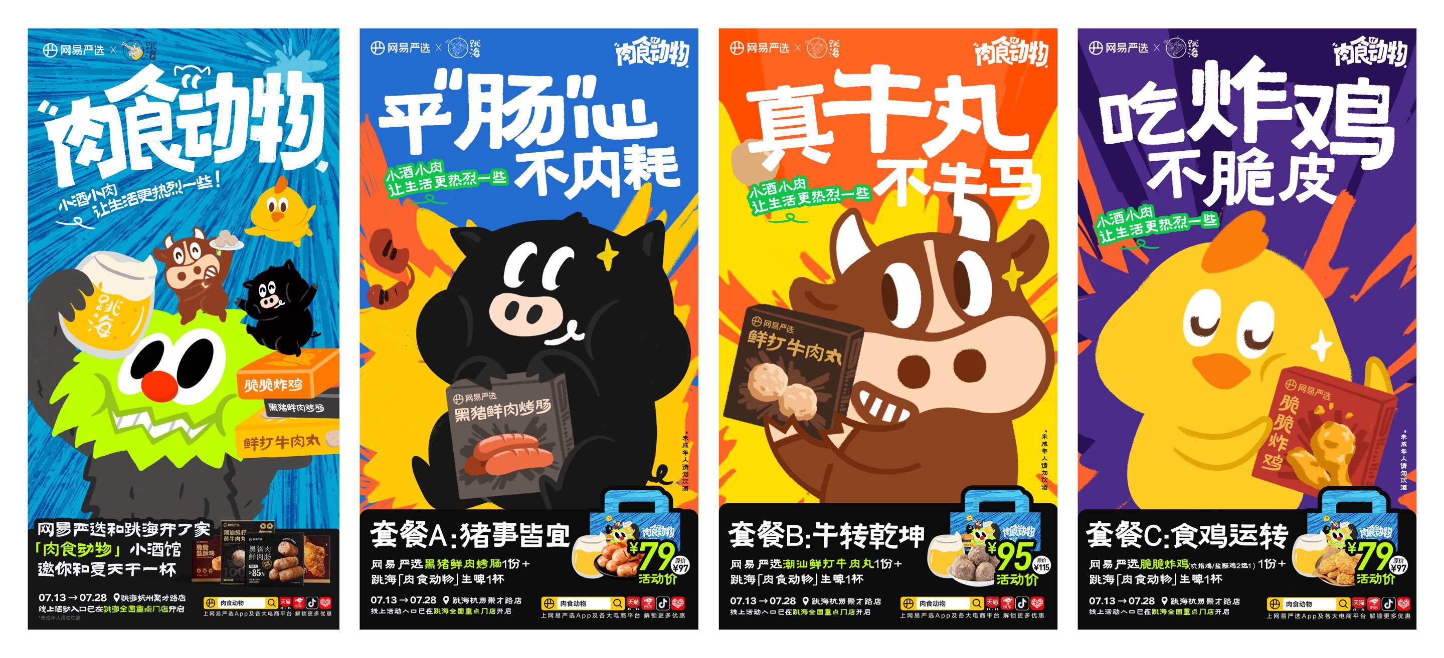 结合当下年轻人追求品质与个性的消费需求,网易严选携手跳海酒馆强强联合,打造“食鸡运转”、“猪事皆宜”、“牛转乾坤”三个套餐,精准对接年轻消费者的味蕾偏好与生活理念。