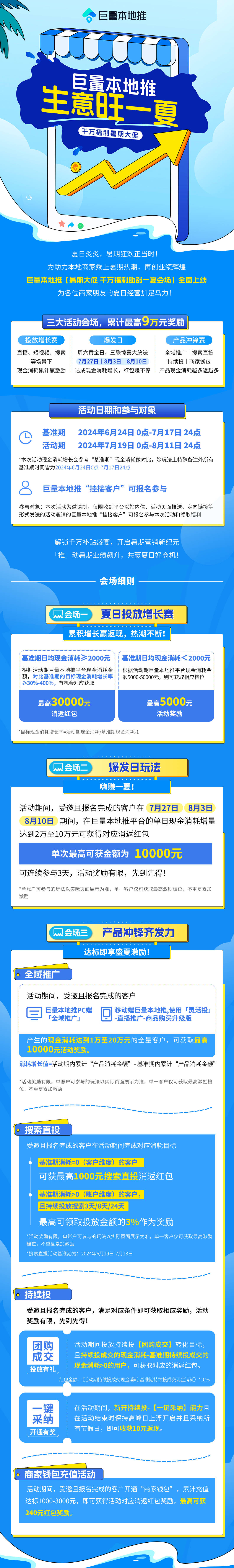 巨量本地推官方开启暑期大促模式,千万活动福利,与官方指导多重加持,助力本地商家夏日经营!